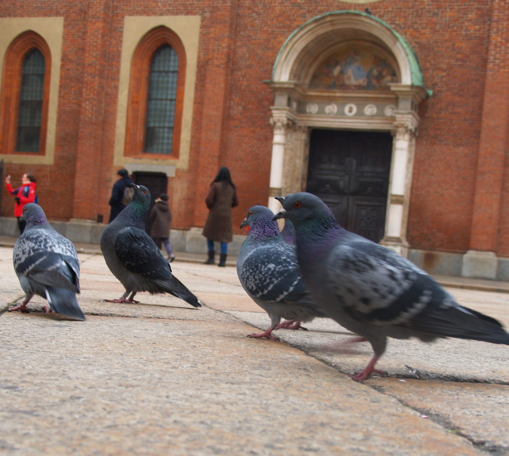 Následující dopoledne a poledne budu věnovat památce a umění Leonarda a místním kostelům. Asi měsíc předem jsem zajistil lístky, abych měl možnost vidět obraz na zdi místní klášterní jídelny, který zná celý svět – obraz Poslední večeře. O tuto výstavu je veliký zájem a denní rozvrh je pevně daný. Tvoří jej malé skupinky turistů, které se posunují jako had v patnácti minutových intervalech celou výstavou. Nesmím zmeškat svůj vstup. Abych měl jistotu, přicházím v neznámém městě dříve. Tento plán jsem neměl sám. Na malém náměstí před touto církevní stavbou posedávají páry i skupinky dalších hostů. Všudy přítomní holubi se procházejí mez námi.
